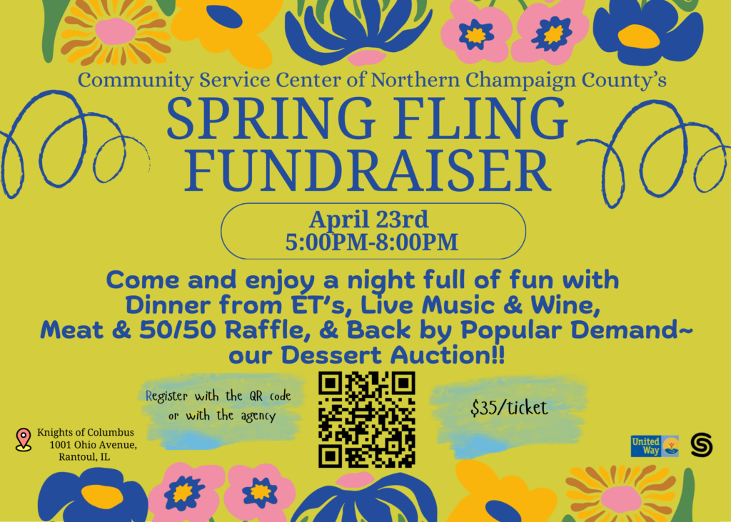Events Spring Fling Fundraiser Date/Time: Thursday, April 23rd, 5:00 PM – 8:00 PM Location: Knight’s of Columbus, Rantoul Club, 1001 Ohio Ave., Rantoul, IL 61866 Contact: Terri Mickey, 217-893-1530 Register